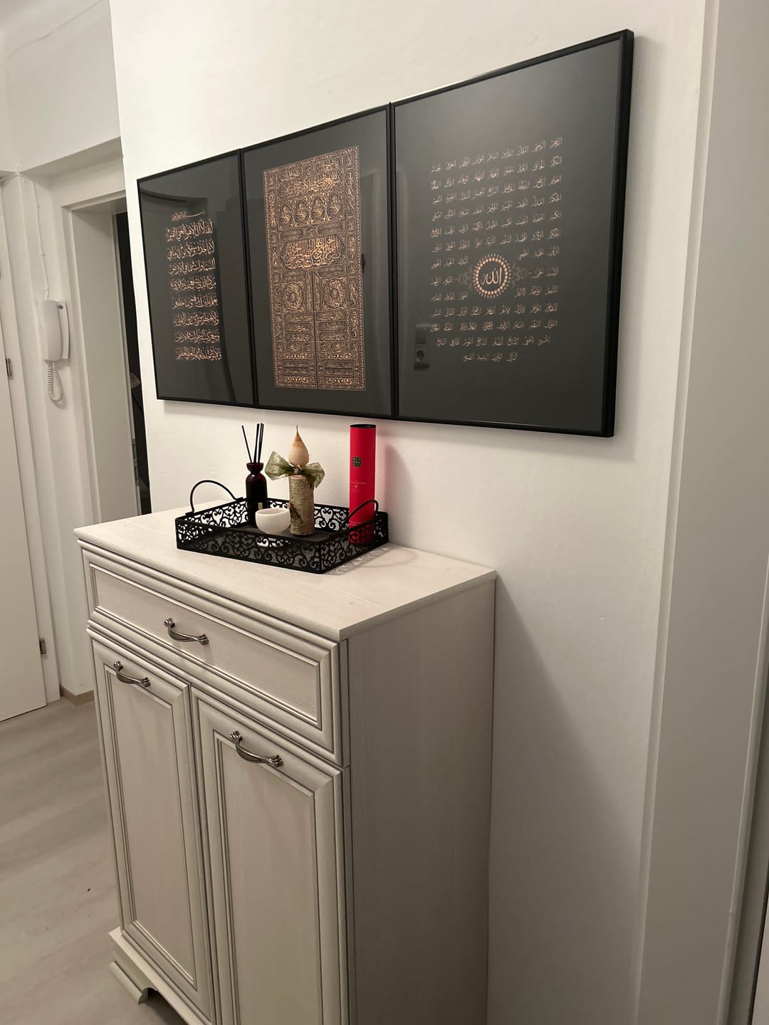 Islamic frames Pakistan, calligraphy frames set of 3, Arabic wall art, 13×17 Islamic calligraphy, Islamic wall decor frames, Quranic calligraphy frames, Muslim home decoration, Bismillah frame, Alhamdulillah frame, Allah Hu Akbar frame, wall hanging Islamic art.